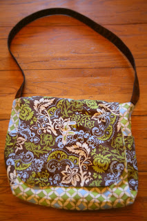 I used my pattern for a large messenger bag and  added pockets to the front for those little toys and such that get lost in the bottom. They are also good for momma's stuff too! And it still has the pockets on the side.